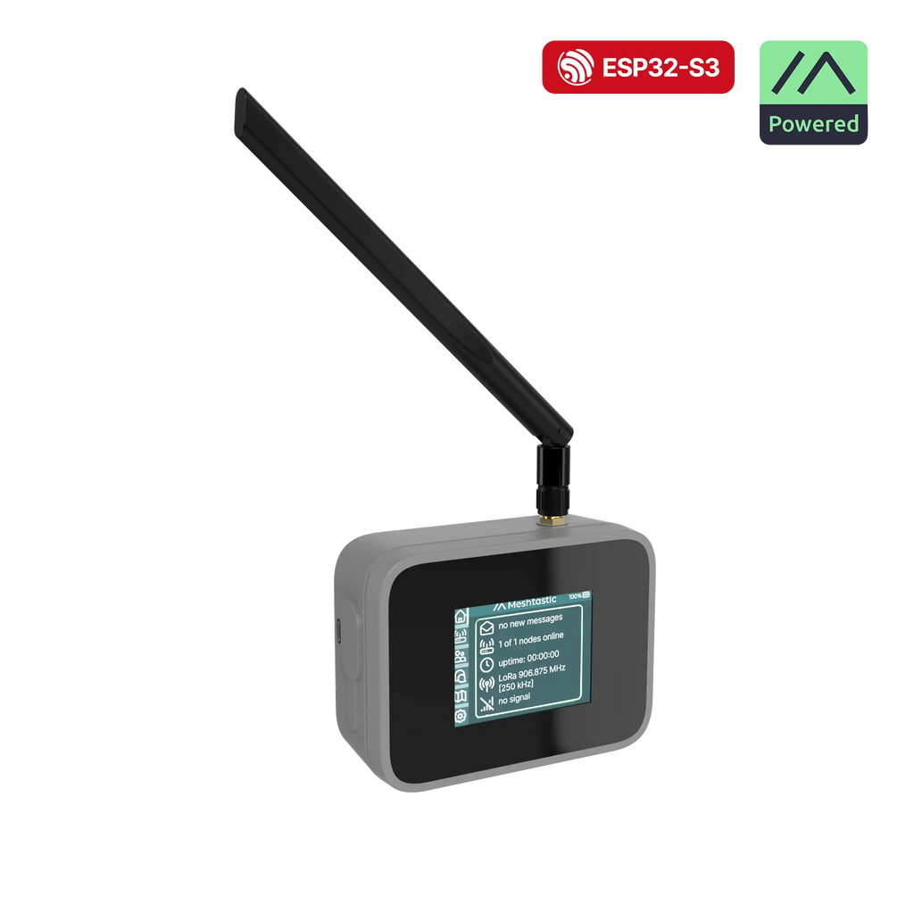 Built on the Espressif ESP32-S3 MCU and featuring a Semtech SX1262 transceiver module for LoRa connectivity, the device uses the industry-standard SX1262 transceiver module based on LoRa technology. It supports the latest Meshtastic User Interface (MUI) for a more interactive experience. It includes a TFT touch screen, an on-screen keyboard, and an SD card slot to store and display maps within the MUI. New messages are announced through an integrated buzzer, and users can also send preset (“canned”) messages, which can be configured via BLE using the Meshtastic mobile app. The built-in GNSS location module provide accurate positioning and movement data across the network, making it a reliable Meshtastic device with GPS.